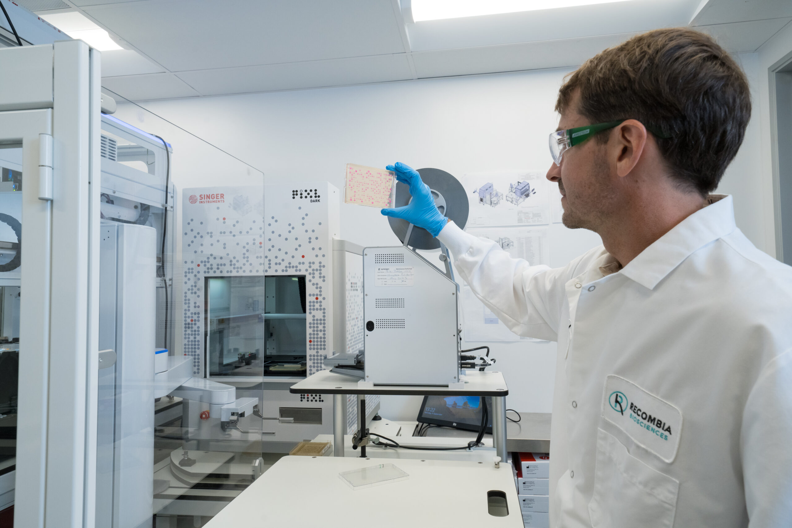 Recombia’s PIXLⓇ with a fully automatic door is integrated with a robotic arm to achieve a completely hands free workcell. They used a Lab Information Management System (LIMS) to manage their workflow and achieve maximum efficiency.